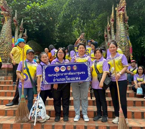 ?นางสาวหฤทัย ใจสุข พัฒนาการอำเภอเวียงแหง พร้อมด้วยเจ้าหน้าที่พัฒนาชุมชนอำเภอเวียงแหงและสมาชิกชมรมผู้นำอาสาพัฒนาชุมชนอำเภอเวียงแหง ได้เข้าร่วมกิจกรรม"ตามรอยครูบาฯ จิตอาสา พัฒนาเกื้อกูล" ครั้งที่ 7 ประจำปี 2568 ณ วัดพระธาตุดอยสุเทพราชวรวิหาร ตำบลสุเทพ อำเภอเมืองเชียงใหม่ จังหวัดเชียงใหม่ โดยมีนางณัฐธยาน์ โปธิมา ผู้อำนวยการกลุ่มงานประสานและสนับสนุนการบริหารงานพัฒนาชุมชน รักษาราชการแทนพัฒนาการจังหวัดเชียงใหม่ เป็นประธานในพิธี โดยมีหัวหน้าส่วนราชการจังหวัดเชียงใหม่ ผู้อำนวยการกลุ่มงาน พัฒนาการอำเภอ เจ้าหน้าที่พัฒนาชุมชนจังหวัด/อำเภอ ผู้นำอาสาพัฒนาชุมชน (ผู้นำ อช.) อาสาพัฒนาชุมชน (อช.) จากทั้ง 25 อำเภอ เข้าร่วมกิจกรรม